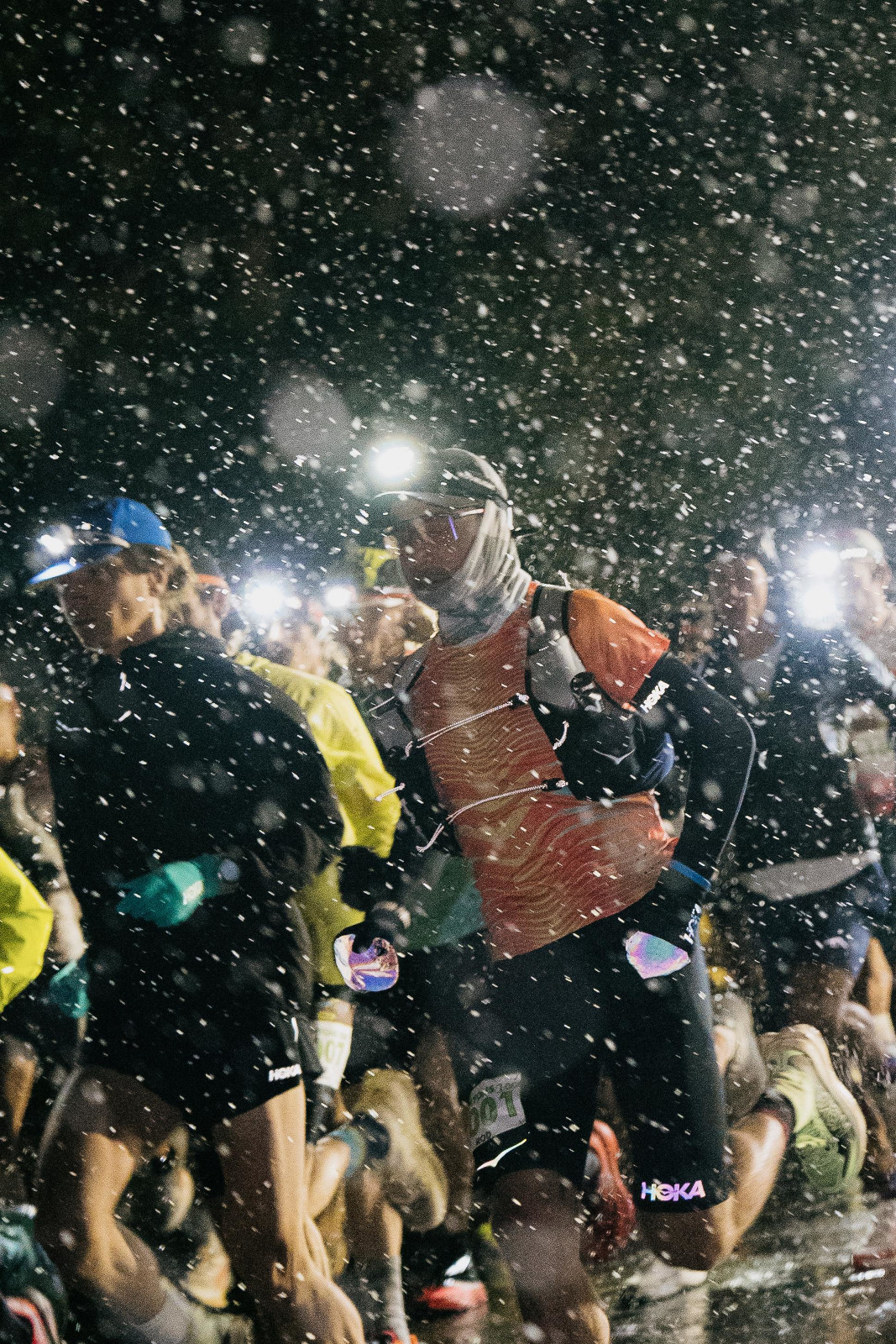 A livello climatico, siamo partiti che nevicava, la prima ora e un quarto con le frontali. Quello non è stato semplicissimo da gestire, perché io non sono abituato a correre con la frontale, non mi sono mai allenato con la frontale, però essendo in gruppo, anche con la luce degli altri, sono stato facilitato. C'era molto freddo. Mi sono tolto la giacca dopo due ore, in realtà è stato un po' un errore, perché ero su una salita, poi siamo scollinati da un canyon a Devil's Thumb e lì c'era molto freddo.