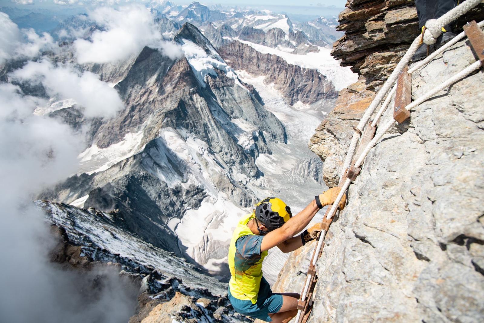 Per chi non lo sa il Cervino è uno dei 4000 più iconici che abbiamo sulle Alpi, sia per la storia dell'alpinismo, sia proprio come montagna simbolo, salire sulla Gran Becca, come la chiamiamo noi valligiani, è difficile, è una via alpinistica. Difficoltà medio facili perché sulla normale italiana, ovvero la “Cresta del Leone” le parti più tecniche sono state attrezzate con dei canaponi o catene (famosa la scala Jordan). Comunque ci va una bella preparazione fisica oltre che tecnica e generalmente si fa in due giorni. Si sale, si dorme alla Capanna Carrel, il giorno dopo si va in vetta e si rientra. Per farla in giornata bisogna essere molto allenati e preparati nell'affrontare situazioni alpinistiche. Diciamo salire slegati con delle scarpe da trail sicuramente non è l'immagine giusta da mostrare, ma quello è solo il giorno del record. Alla base ci sono giornate trascorse in montagna dove si gode veramente di tutto quello che la montagna e l'alpinismo può dare, ci tengo a sottolineare questo fattore.