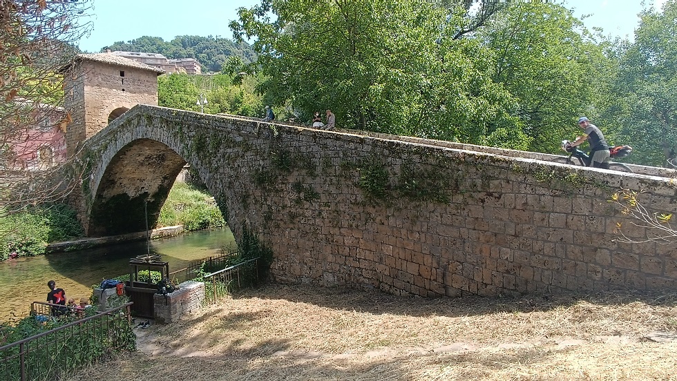 8) Il tempo non è mai abbastanza. Vorrei dirvi di prendervi almeno una settimana per fare tutto il giro. Non che non si possa fare anche in tre o quattro giorni, ma ci sono talmente tanti luoghi da assaporare e scoprire che pedalare a testa bassa sul manubrio è uno spreco assoluto. Tra i tanti rimpianti ho quello di non aver visitato Civita, la città che muore: si arriva a Bagnoregio e dalla sua balconata si osserva la Valle dei Calanchi. Là davanti si erge Civita costruita su un colle minato alla base da una continua erosione. Mi pento di non aver lasciato la bici per scendere i mille gradini e poi risalirne altrettanti dopo il ponte sospeso.