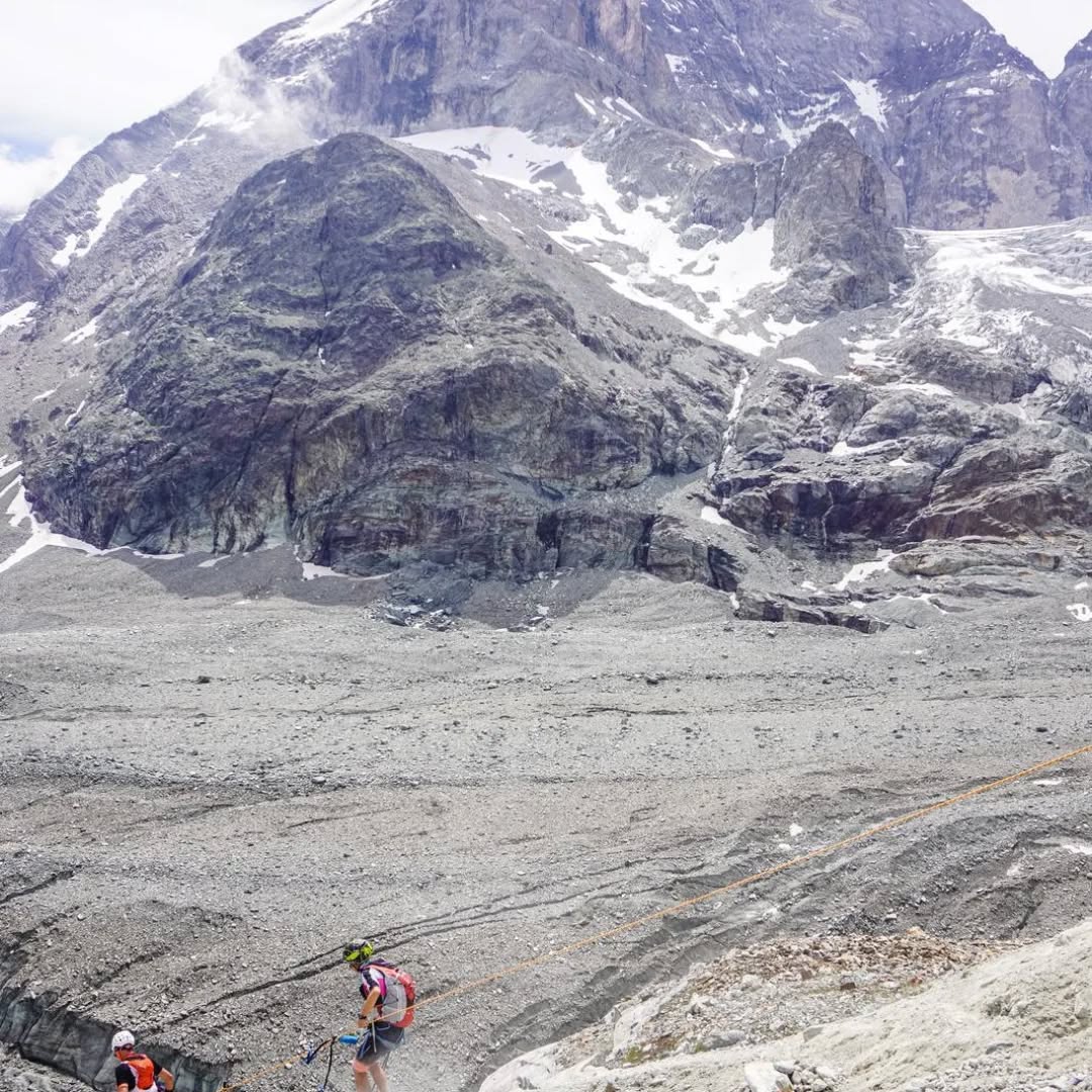 Dopo aver raggiunto il primo ristoro al Rifugio Perucca-Vuillermoz - e scende un velo di tristezza al pensiero della tragedia del Lyskamm del 1985 - valicato lo splendido colle di Valcourniere, ci si tuffa nella fantastica Alta Valpelline e si raggiunge, un occhio all'orologio, il rifugio Prarayer. Di qui l'ambiente via via sempre più minerale ci esalta, ma l'orologio ci fa tornare a terra, perché il cancello orario delle 10,30 del Rifugio Aosta è una spada di Damocle che si abbatterà su non pochi compagni di avventura.