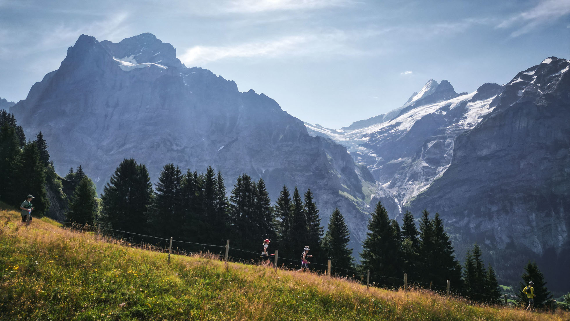 Poi un lunghissimo traverso mosso in mezzo ai prati ha permesso di godersi per bene la visuale di tutta la valle di Grindelwald e le montagne dietro (sì, anche l’Eiger, ma non solo), prima di un “ricciolo” nel tracciato, che per far raggiungere ai e alle concorrenti il ristoro di First e la sua passerella a sbalzo sul vuoto, a cui erano arrivati a meno di 200 metri di distanza, ci ha messo quasi 10 km e 700 metri di dislivello.