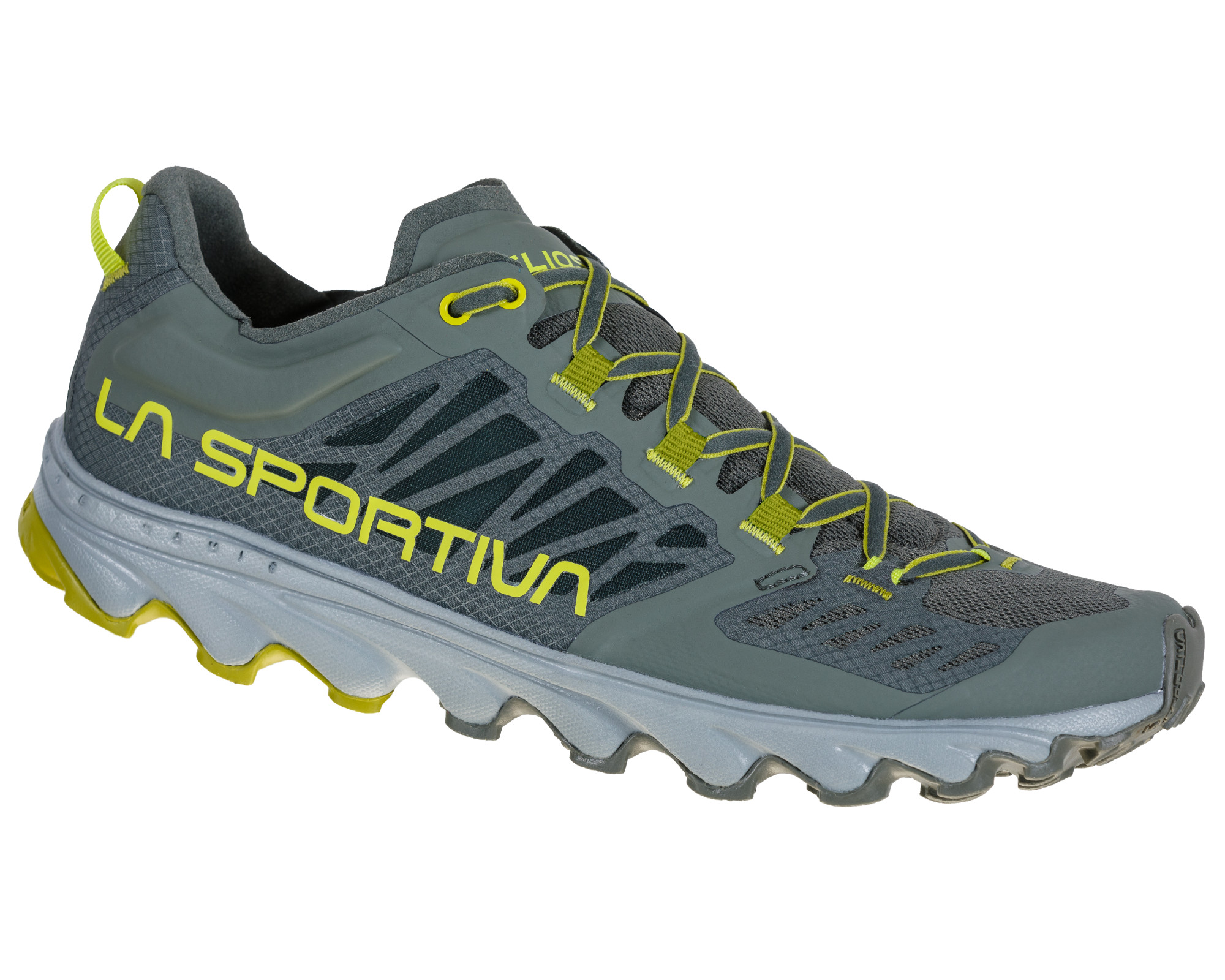 Pensiamo che l’heritage di un brand di scarpe da montagna sia direttamente legato ai sentieri che ci sono fuori dalla porta dell’azienda: La Sportiva è di Ziano di Fiemme, nel cuore delle Dolomiti, e non è un caso se le sue scarpe da corsa hanno in comune aggressività e durabilità, che le rendono perfette per i terreni poco corribili e usuranti delle Dolomiti. Ma al contrario delle sue sorelle, Helios tradisce queste caratteristiche in nome della corribilità: una scarpa perfetta per le quote più basse e per i terreni più morbidi.