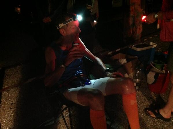 Eccolo qui fermo al ristoro dopo aver provato a continuare per 4 ore....